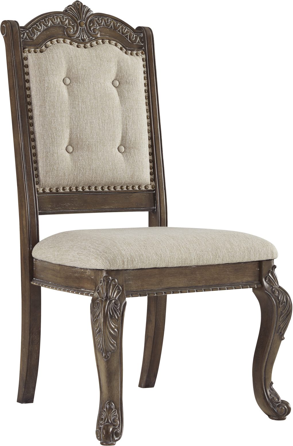 Sit comfortably and regally for all your fine dining on the Charmond dining side chair. The polyester upholstery and button tufting provide additional comfort.