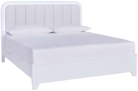 This California king upholstered panel bed is a showstopper, bringing a touch of modern glamour to your sanctuary. A sleek white finish, paired with the cushioned headboard’s off-white fabric with metallic silver accent threads, creates a sophisticated feel.Read More