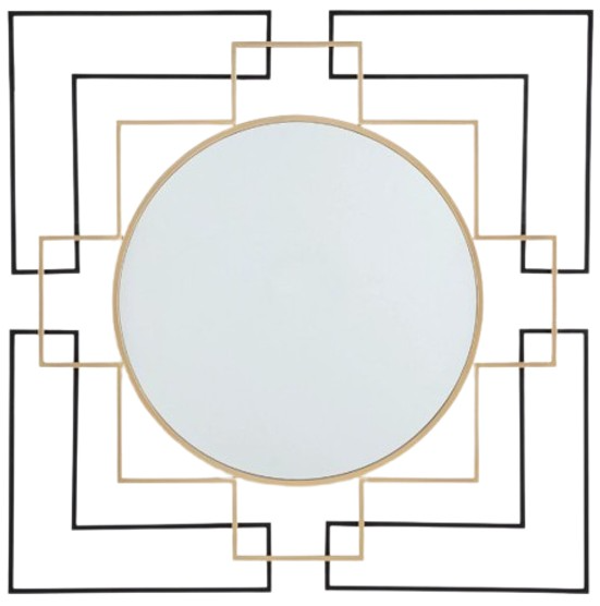 This accent mirror brings a layer of contemporary flair to traditional art deco motifs. Its frame, in a geometric design emphasized by black and gold-tone finishes, makes a strong sculptural statement. What a sleekly stylish addition to a living room or entryway.Read More
